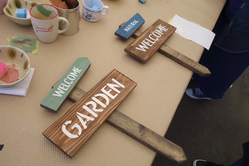 4月27日のワークショップでは、おしゃれな色合いのミルクペイントを使って、お庭や玄関に飾れるガーデンピックを作りました。