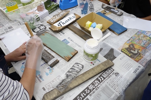 あらかじめ用意されていた板と、好きなデザイン・文字のステンシルを選んだら…。