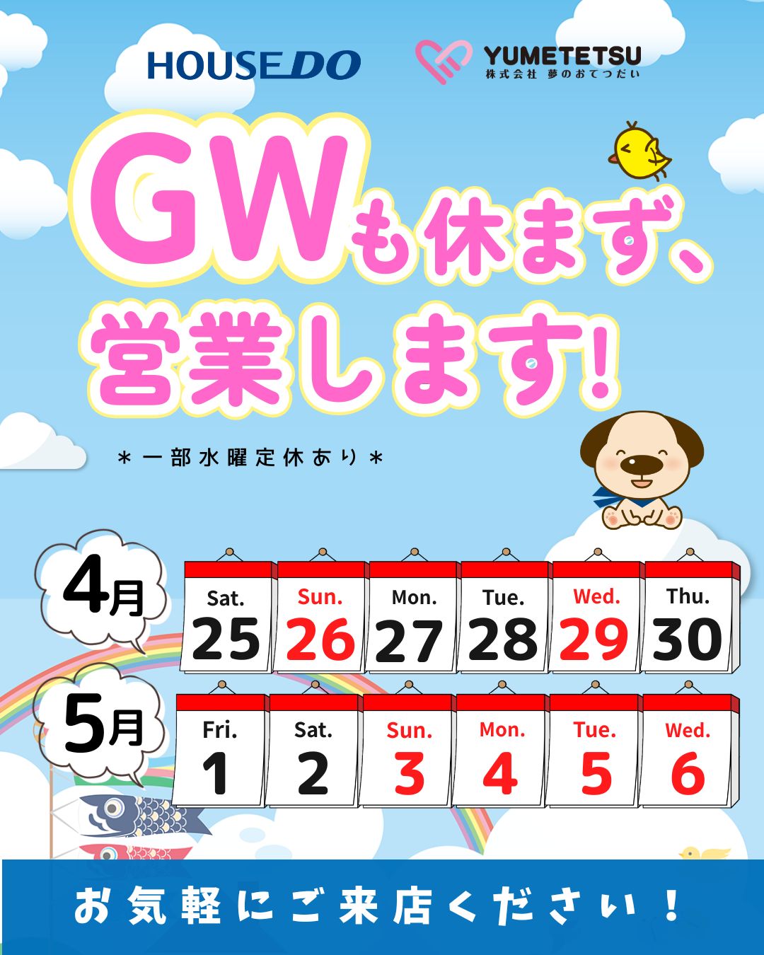 GWも休まず営業いたします!